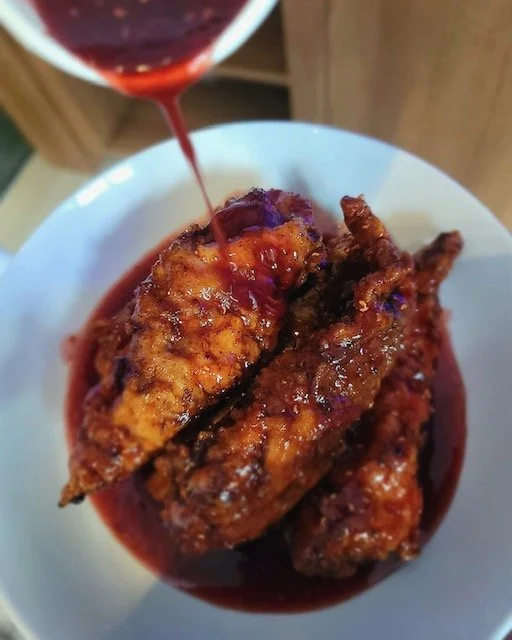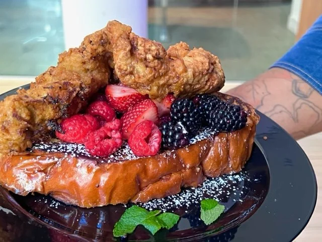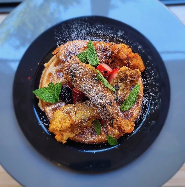The menu included Madagascar Vanilla French Toast, Buttermilk Fried Chicken and Caramel Waffles served with Pure Maple Syrup, Fresh Fruit, Homemade Whipped Butter with a side of Raspberry Glazed Chicken Tenders. Of course this amazing meal was accompanied by one of his crafted signature beverages, Poetic Punch.